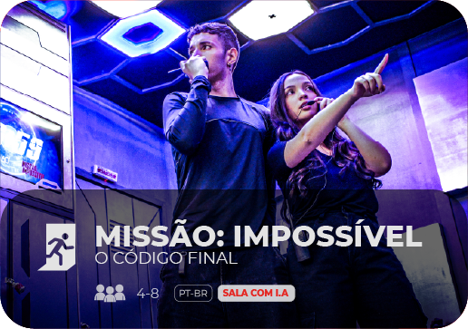 Podemos trabalhar das duas formas, só será necessário entender o escopo do seu projeto. Nossas principais formas de pagamento são através de depósito em conta, cartão crédito ou faturamento. Não, cada unidade de São Paulo possui suas próprias atrações. Caso se trate de uma unidade franqueada, as atrações poderão ser iguais às de São Paulo. No caso de reservas corporativas, os diferenciais são os adicionais que oferecemos, dependendo da unidade escolhida pela empresa, tais como: – Coffee-break, almoço/jantar e happy hour; – Espaço para confraternização ou reuniões antes ou após a dinâmica; – Parceria com empresa de consultoria para fechamento ou análise de grupo (Debriefing ou MAPPE); – Visualização do grupo em jogo dentro de nossa sala de monitoramento. Sim, o que muda são as condições de pagamento e os adicionais em reserva. É o item referente ao salão ou espaço que disponibilizamos para reuniões e confraternizações. Nossos jogos têm duração de até 60 minutos. Nesse caso pode haver variação, de acordo com o escopo do evento, sendo de no mínimo 10 minutos e no máximo 60 minutos.